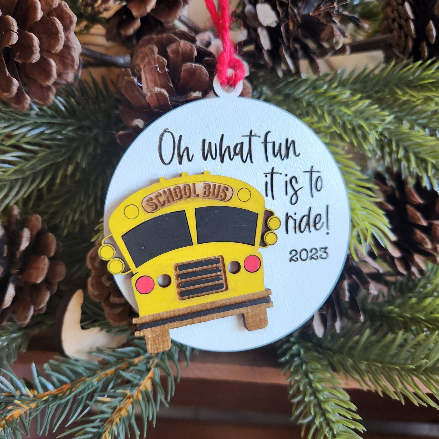 This delightful 3D ornament makes a perfect gift for your favorite school bus driver! Add a festive touch to your holiday decorations and show your appreciation with this fun-filled tribute to the classic carol, "Oh what fun it is to ride the bus!"