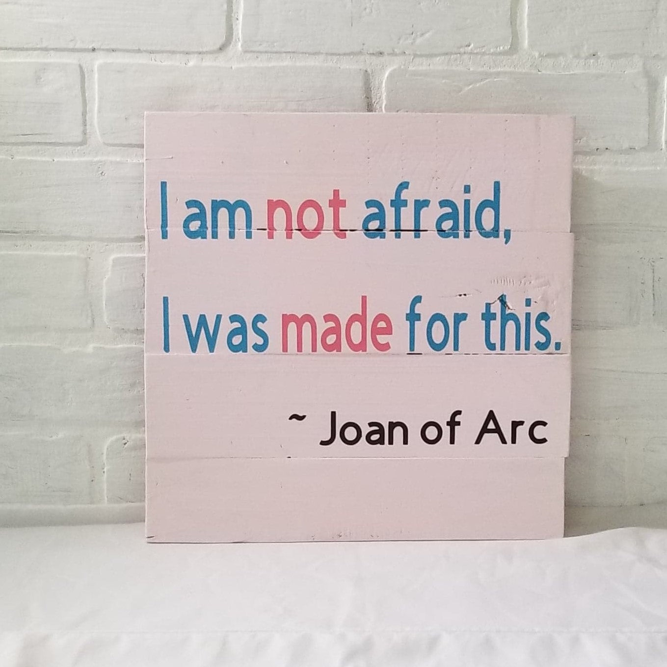 Spread some inspiration and motivation with this one-of-a-kind square design, featuring a Joan of Arc quote: "I am not afraid, I was made for this!" Harness your strength and make a statement with this daring design!
