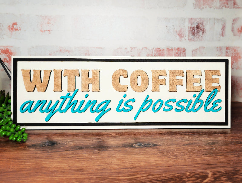 Start your day with a dose of humor and caffeine! This 3D plank serves up the truth: with enough coffee, anything is possible. Whether it's in your office or coffee bar, this sign adds a playful vibe while giving you that little motivational push (along with your coffee, of course). Perfect for those who know the power of a good cup of joe and a positive attitude to kickstart the day!